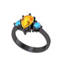 Sitrin ve akuamarin 925 ayar siyah rodyum kaplama gümüş yüzük