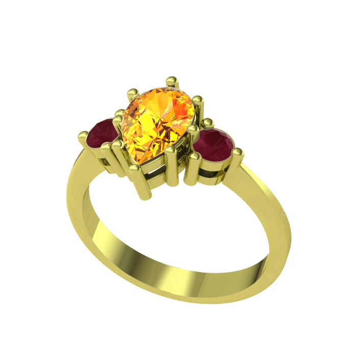 Sitrin ve kök yakut 8 ayar altın yüzük