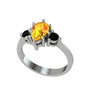 Sitrin ve siyah zirkon 14 ayar beyaz altın yüzük