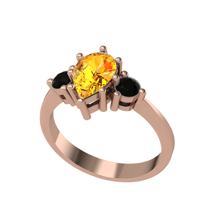 Sitrin ve siyah zirkon 925 ayar rose altın kaplama gümüş yüzük