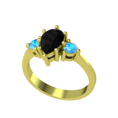 Siyah zirkon ve akuamarin 8 ayar altın yüzük
