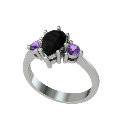 Siyah zirkon ve ametist 8 ayar beyaz altın yüzük