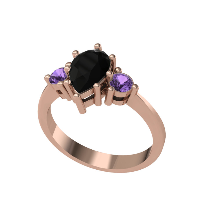 Siyah zirkon ve ametist 8 ayar rose altın yüzük