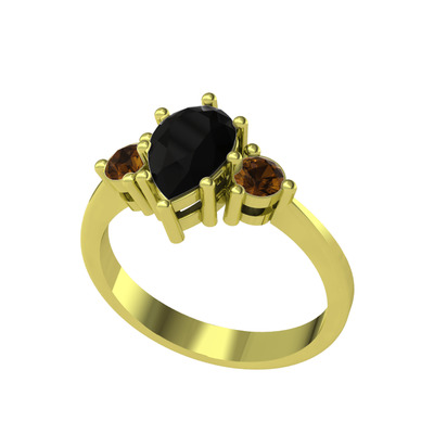 Siyah zirkon ve dumanlı kuvars 925 ayar altın kaplama gümüş yüzük
