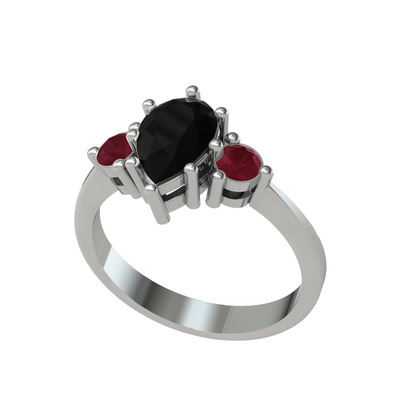 Siyah zirkon ve kök yakut 8 ayar beyaz altın yüzük