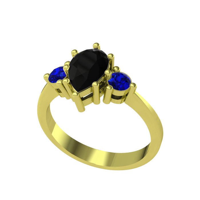 Siyah zirkon ve lab safir 8 ayar altın yüzük