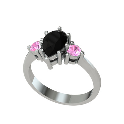 Siyah zirkon ve pembe kuvars 925 ayar gümüş yüzük