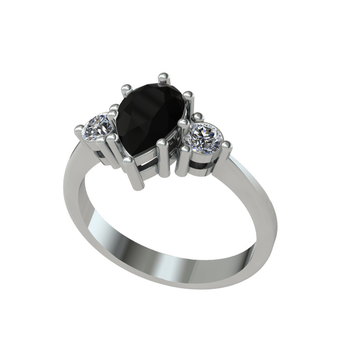 Siyah zirkon ve pırlanta 925 ayar gümüş yüzük (0.32 karat)