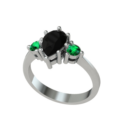 Siyah zirkon ve yeşil kuvars 8 ayar beyaz altın yüzük