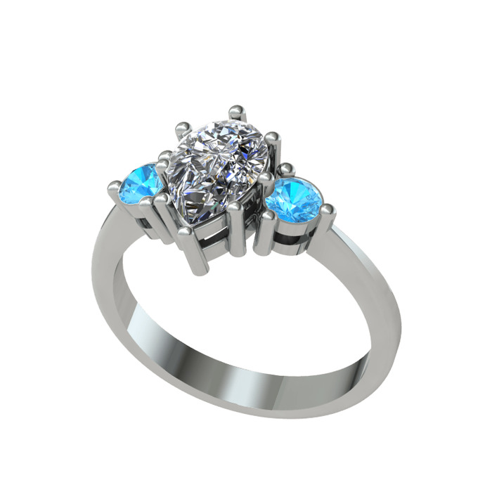 Swarovski ve akuamarin 8 ayar beyaz altın yüzük