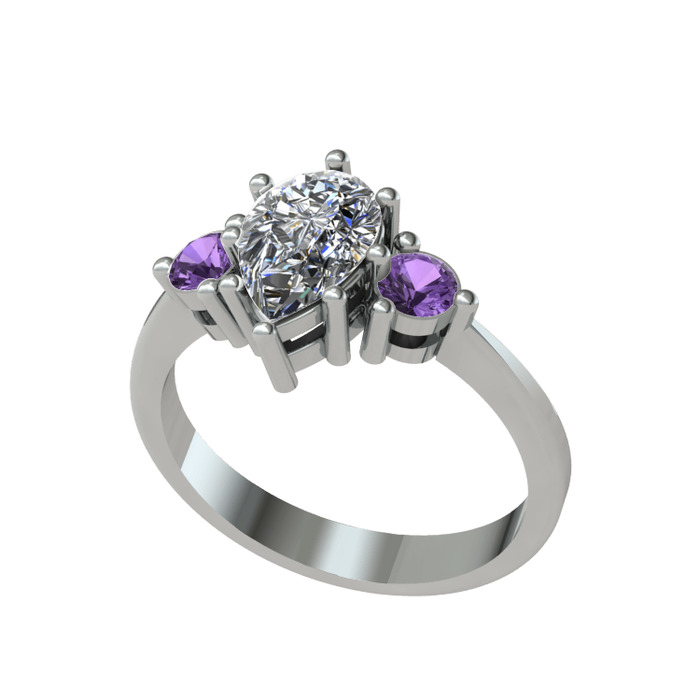 Swarovski ve ametist 14 ayar beyaz altın yüzük