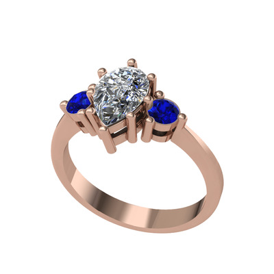 Swarovski ve lab safir 14 ayar rose altın yüzük