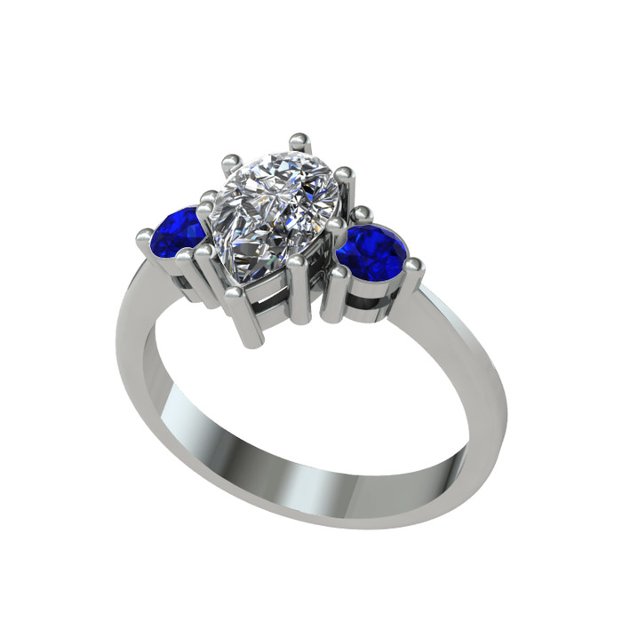Swarovski ve lab safir 8 ayar beyaz altın yüzük