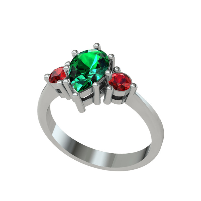 Yeşil kuvars ve garnet 8 ayar beyaz altın yüzük