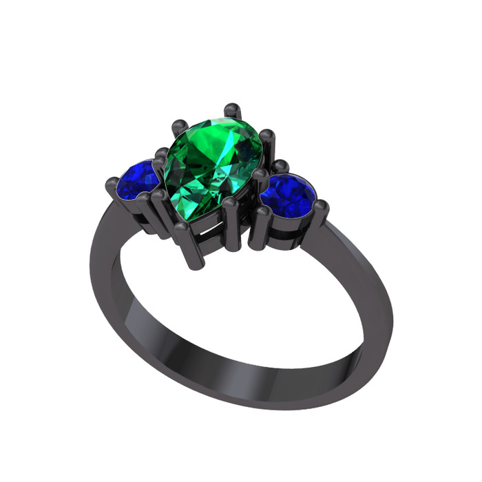Yeşil kuvars ve lab safir 925 ayar siyah rodyum kaplama gümüş yüzük