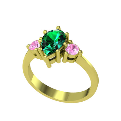Yeşil kuvars ve pembe kuvars 14 ayar altın yüzük