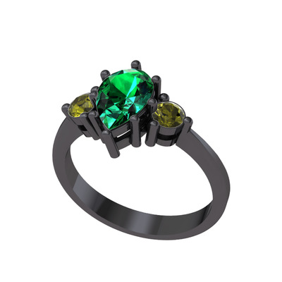 Yeşil kuvars ve peridot 925 ayar siyah rodyum kaplama gümüş yüzük