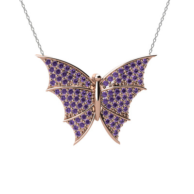 Ametist 18 ayar rose altın kolye (40 cm beyaz altın rolo zincir)