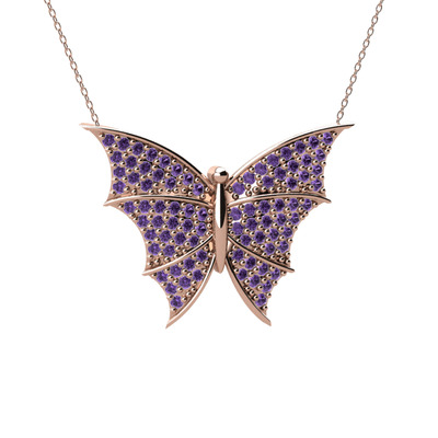 Ametist 18 ayar rose altın kolye (40 cm rose altın rolo zincir)