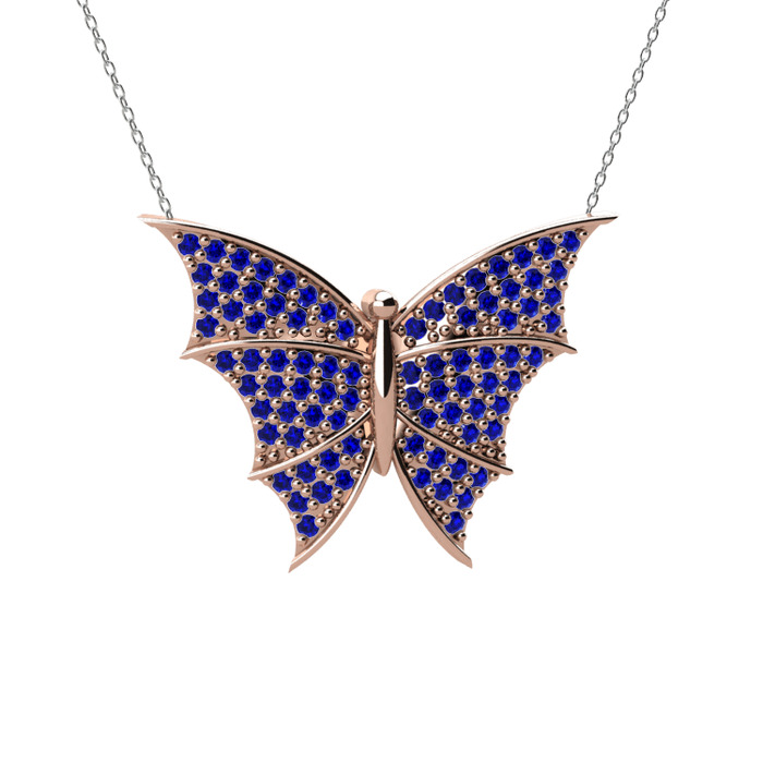 Lab safir 14 ayar rose altın kolye (40 cm beyaz altın rolo zincir)