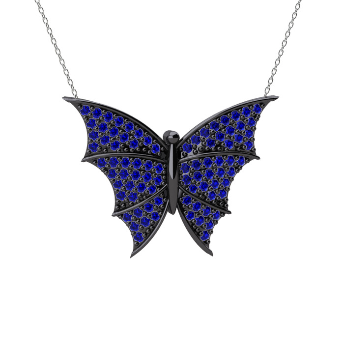 Lab safir 925 ayar siyah rodyum kaplama gümüş kolye (40 cm beyaz altın rolo zincir)
