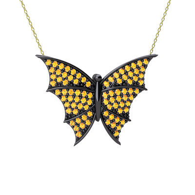 Sitrin 925 ayar siyah rodyum kaplama gümüş kolye (40 cm altın rolo zincir)