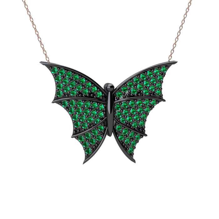 Diana Kelebek Kolye - Yeşil kuvars 925 ayar siyah rodyum kaplama gümüş kolye (40 cm gümüş rolo zincir)