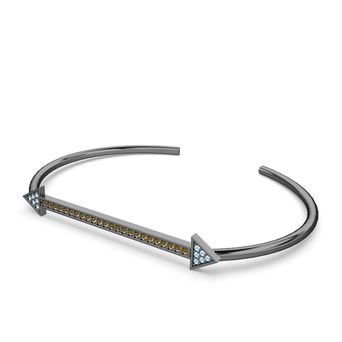 Akuamarin ve dumanlı kuvars 925 ayar siyah rodyum kaplama gümüş bilezik