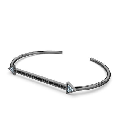 Akuamarin ve siyah zirkon 925 ayar siyah rodyum kaplama gümüş bilezik