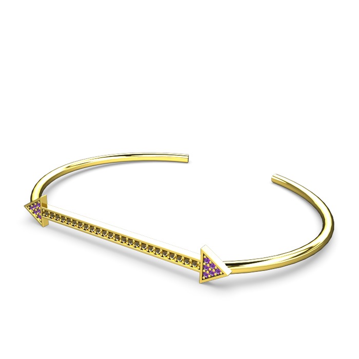 Ametist ve dumanlı kuvars 8 ayar altın bilezik