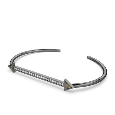 Dumanlı kuvars ve beyaz zirkon 925 ayar siyah rodyum kaplama gümüş bilezik