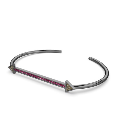 Dumanlı kuvars ve rodolit garnet 925 ayar siyah rodyum kaplama gümüş bilezik