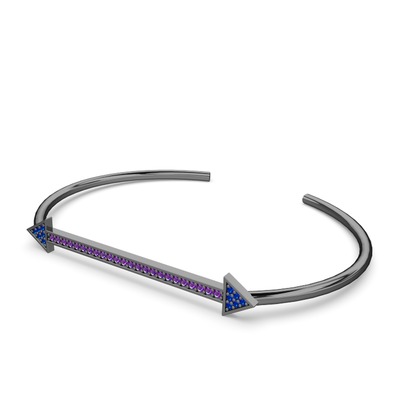 Lab safir ve ametist 925 ayar siyah rodyum kaplama gümüş bilezik