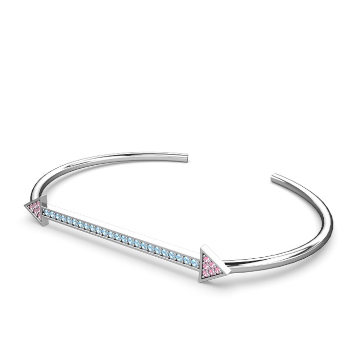 Pembe kuvars ve akuamarin 8 ayar beyaz altın bilezik