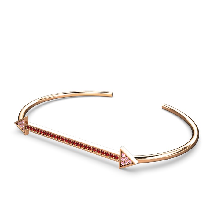Pembe kuvars ve garnet 14 ayar rose altın bilezik