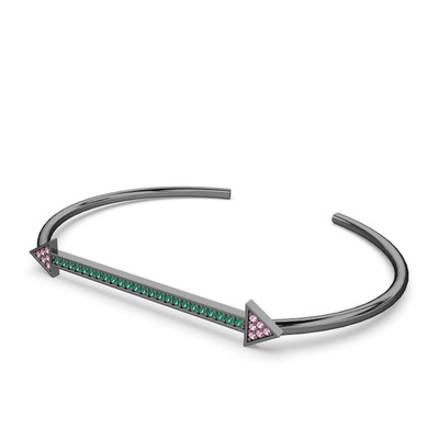 Pembe kuvars ve yeşil kuvars 925 ayar siyah rodyum kaplama gümüş bilezik