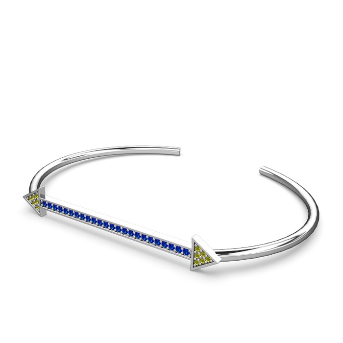 Peridot ve lab safir 14 ayar beyaz altın bilezik