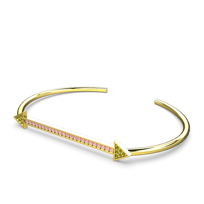 Peridot ve pembe kuvars 14 ayar altın bilezik