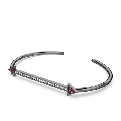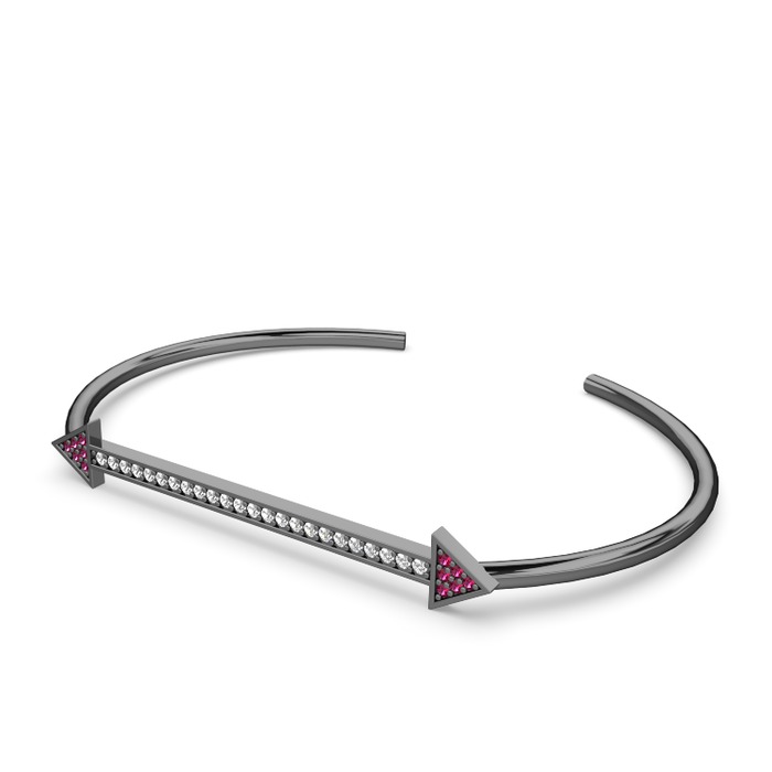 Rodolit garnet ve beyaz zirkon 925 ayar siyah rodyum kaplama gümüş bilezik