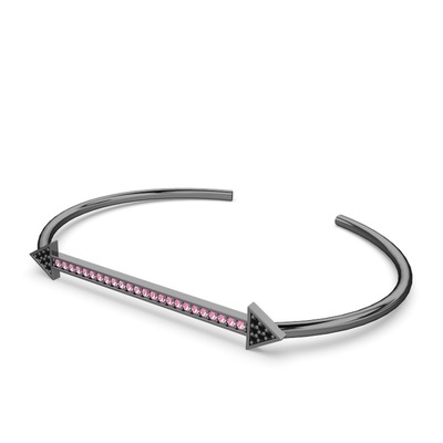Siyah zirkon ve pembe kuvars 925 ayar siyah rodyum kaplama gümüş bilezik