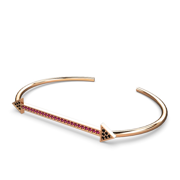 Siyah zirkon ve rodolit garnet 925 ayar rose altın kaplama gümüş bilezik