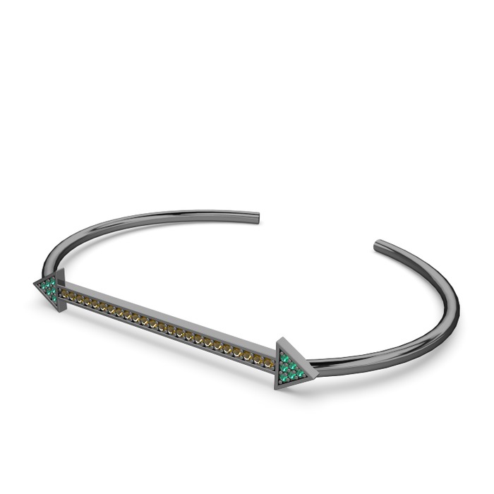 Yeşil kuvars ve dumanlı kuvars 925 ayar siyah rodyum kaplama gümüş bilezik