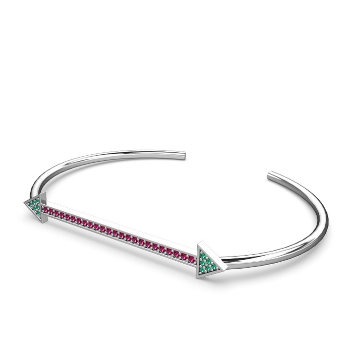 Yeşil kuvars ve rodolit garnet 18 ayar beyaz altın bilezik