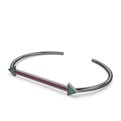 Yeşil kuvars ve rodolit garnet 925 ayar siyah rodyum kaplama gümüş bilezik