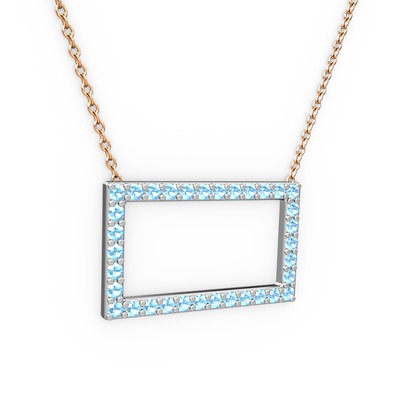 Akuamarin 14 ayar beyaz altın kolye (40 cm gümüş rolo zincir)