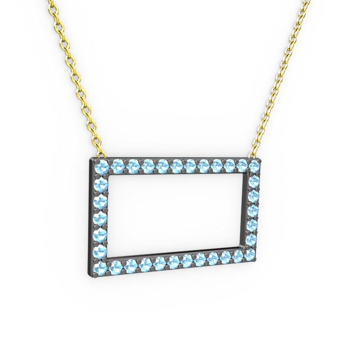Akuamarin 925 ayar siyah rodyum kaplama gümüş kolye (40 cm altın rolo zincir)