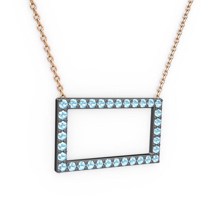 Akuamarin 925 ayar siyah rodyum kaplama gümüş kolye (40 cm gümüş rolo zincir)