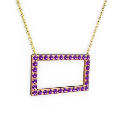 Ametist 8 ayar rose altın kolye (40 cm gümüş rolo zincir)