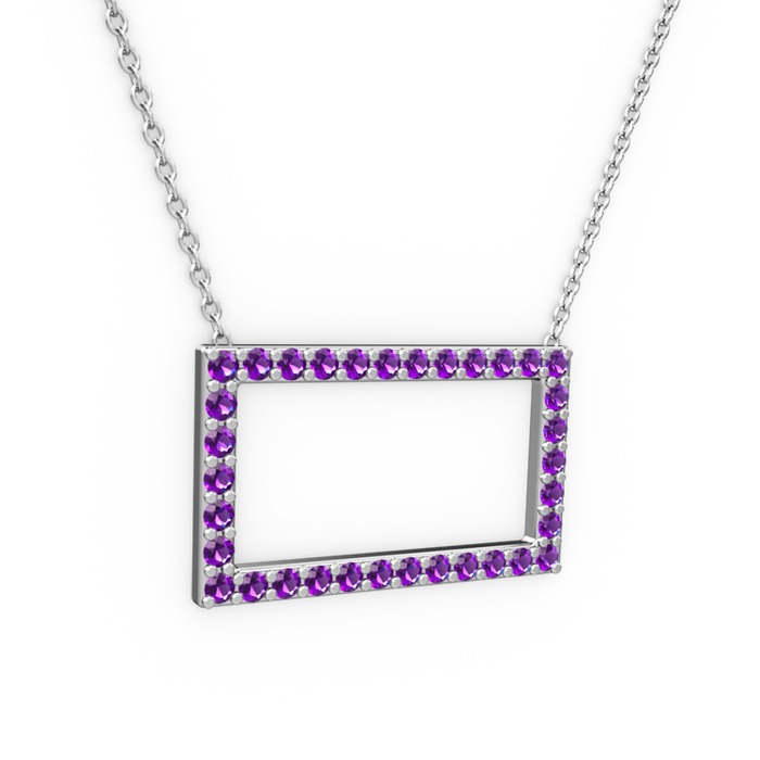 Ametist 925 ayar gümüş kolye (40 cm beyaz altın rolo zincir)