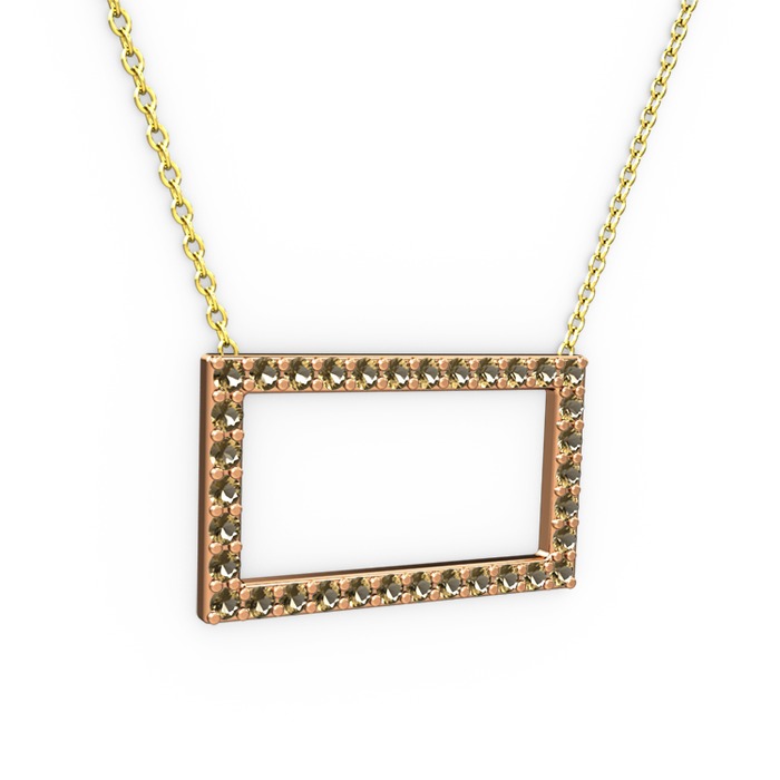Dumanlı kuvars 14 ayar rose altın kolye (40 cm altın rolo zincir)